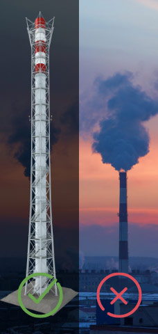 河北優沃針對不同場景下煙囪的使用情況,將煙囪分為六大系統,分別為環保系統、危廢系統、石化系統、景觀系統、不銹鋼系統和數據監測預警系統
